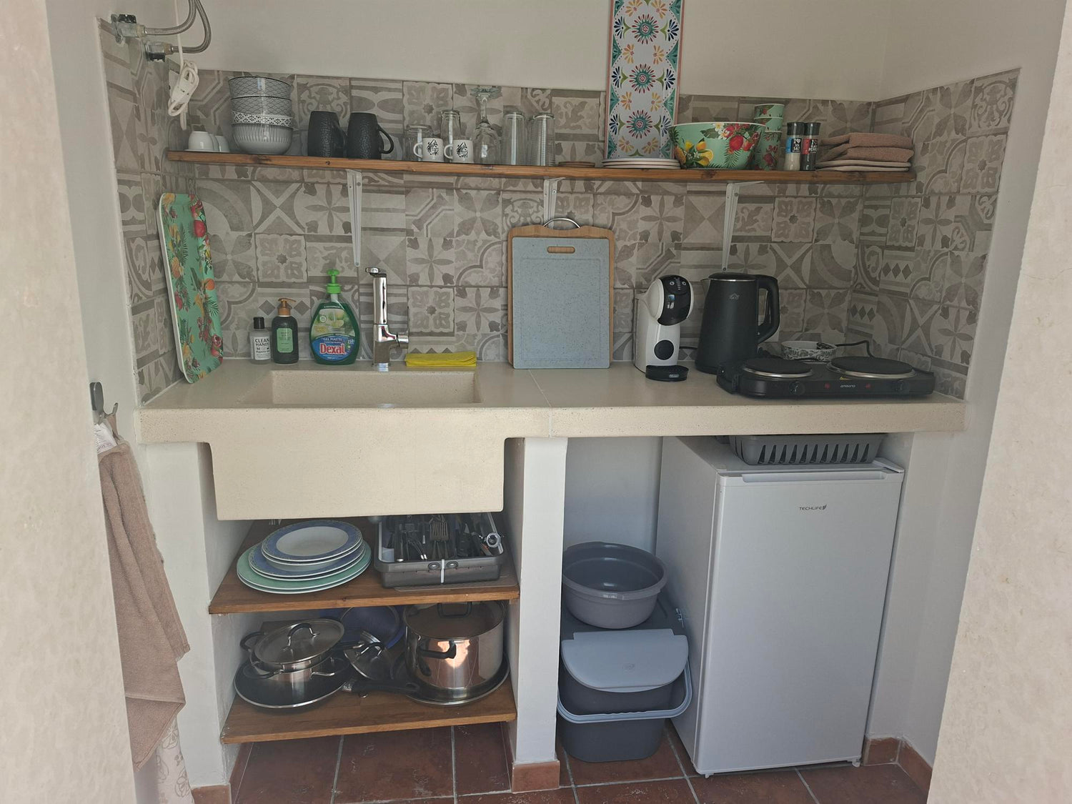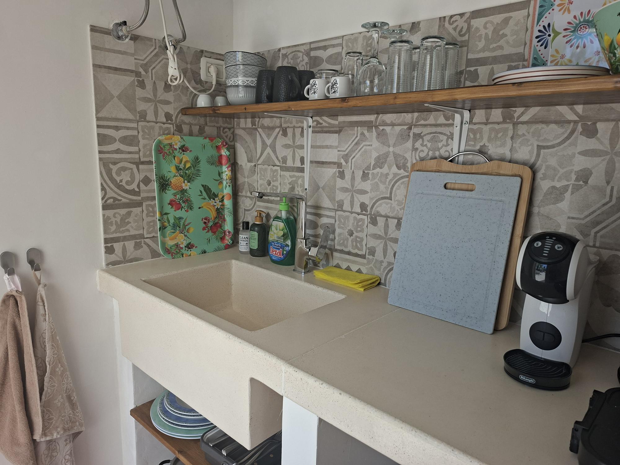 De keuken is eenvoudig en stijlvol, met typische Pugliese elementen zoals natuursteen en houten planken. Er is alles wat je nodig hebt: een kookgelegenheid, koelkast, koffiezetapparaat, waterkoker, airfryer en uitgebreid keukengerei. Perfect om lokale ingrediënten om te toveren tot een verse pasta of salade met een heerlijke Pugliese olijfolie.